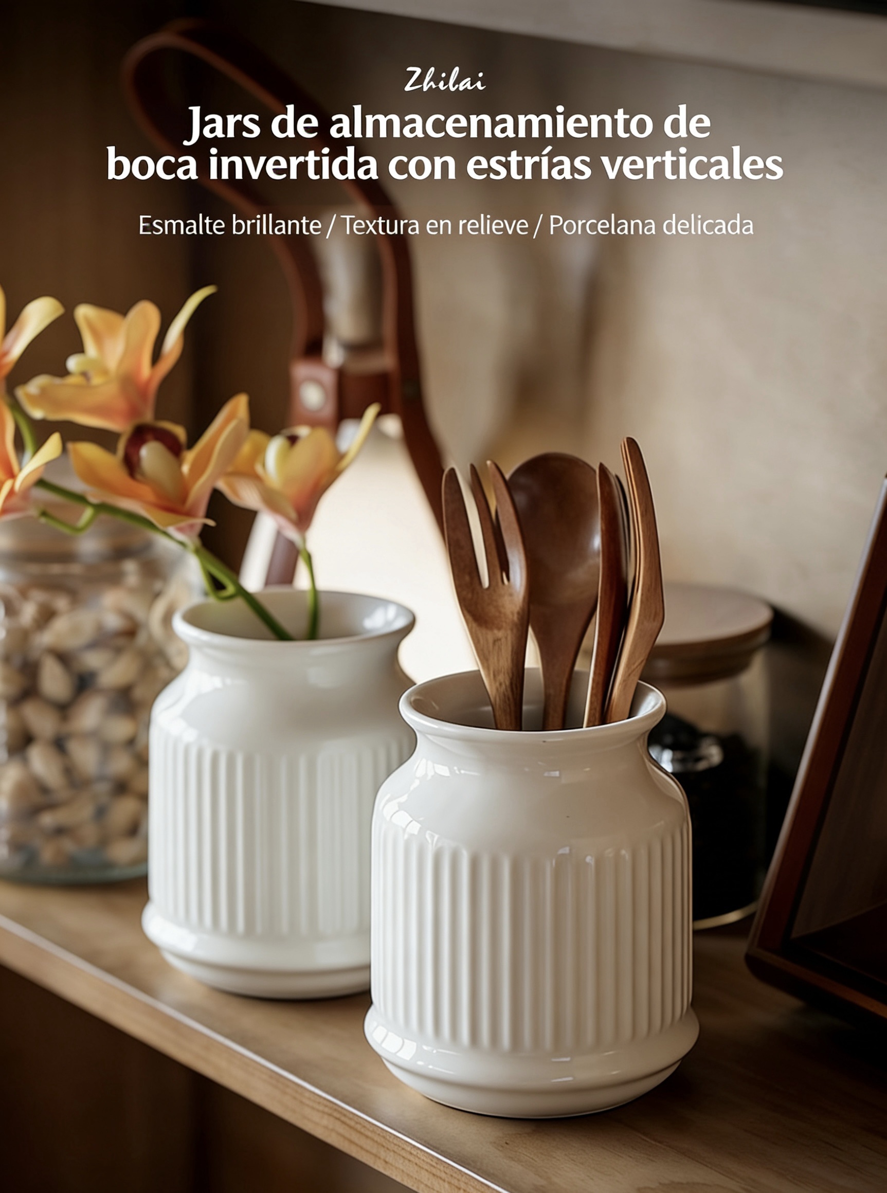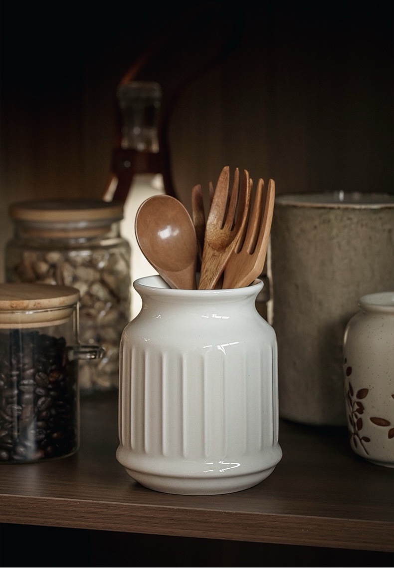 Información del Producto (Recipiente de Almacenamiento con Rayas Verticales – Color Blanco Zhībái)